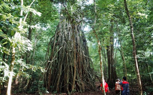 07 : 30 : After you’ve had breakfast ,than we are ready to explore Peucang Island trekking to the Karang Copong ( the trail leads you to the northern point of Peucang Island, hundred years old trees with big root along the trail and animal are often to be seen such as deer, long-tailed macaque, javan wild pig, hornbill taucan and green peafowl, duration approximately 3 hours) passes through primary forest. Also you can see kind of huge trees like Ficus or Liana. As well as you’ll see huge plants like Ficus or Liana. After an hour trekking, we’ll take a rest at Karang Copong.